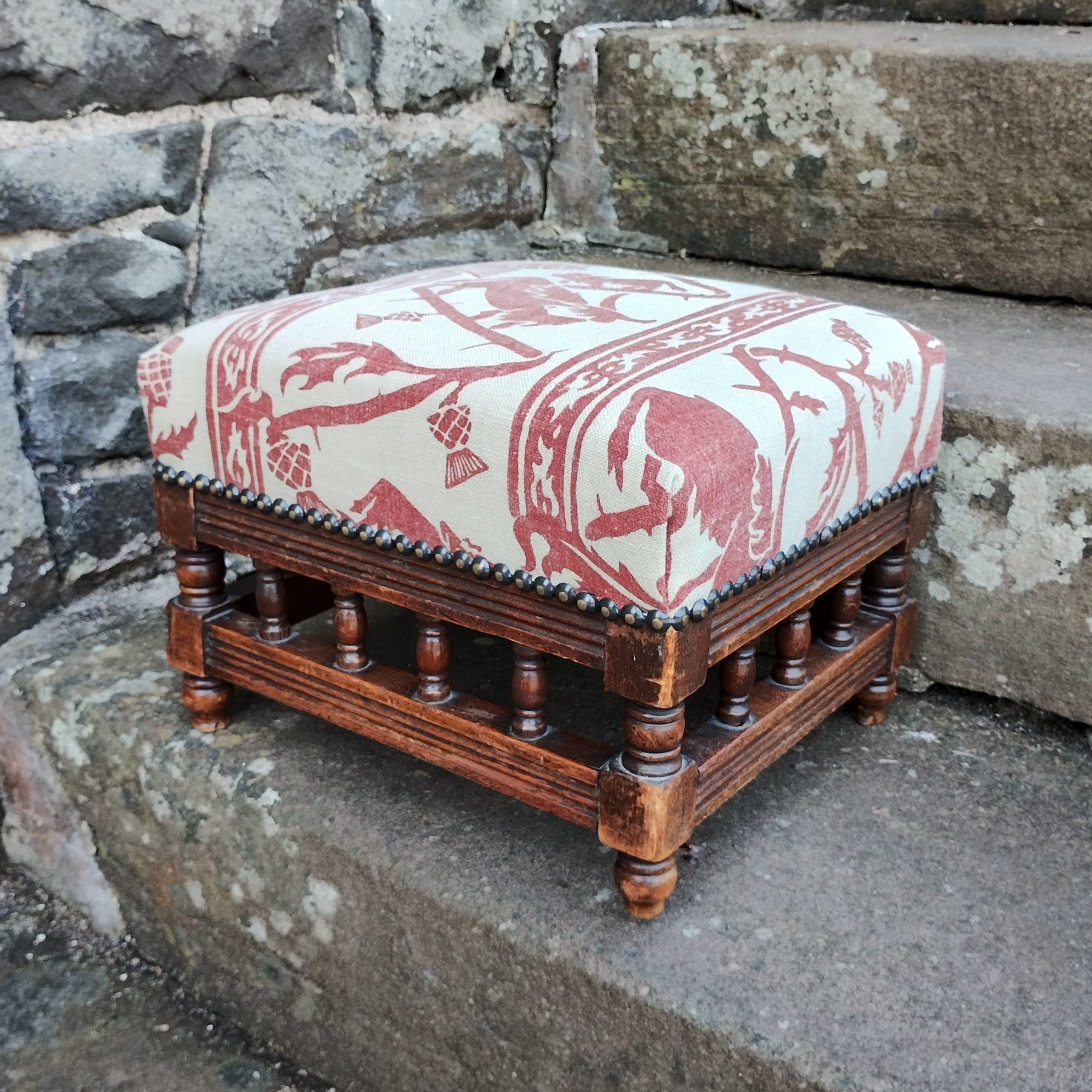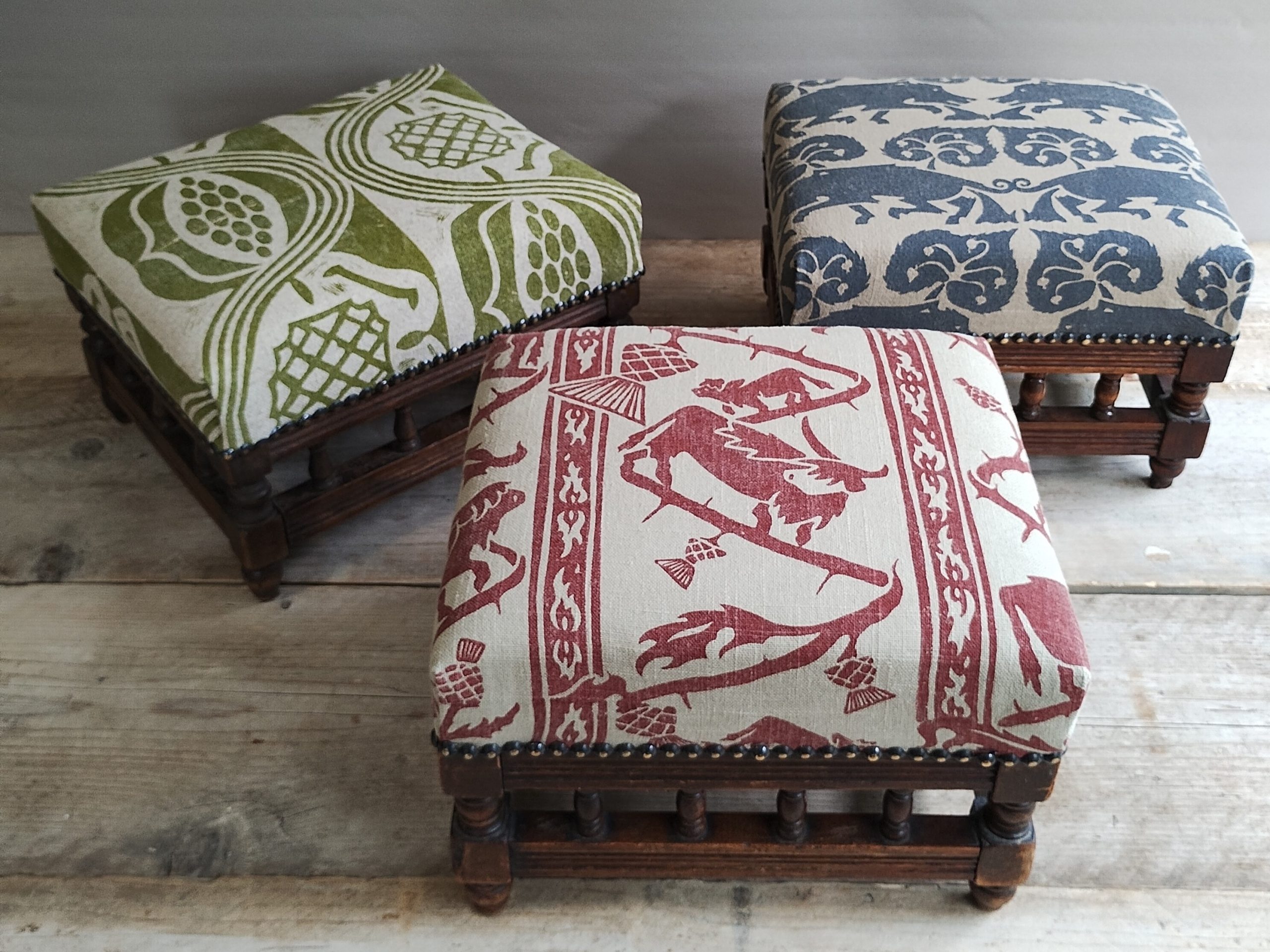 Vintage wooden footstool frames professionally upholstered in my hand-printed fabrics. Each of these pieces has been covered & finished for me locally in Clydesdale by Susan, and is a one-off piece.
