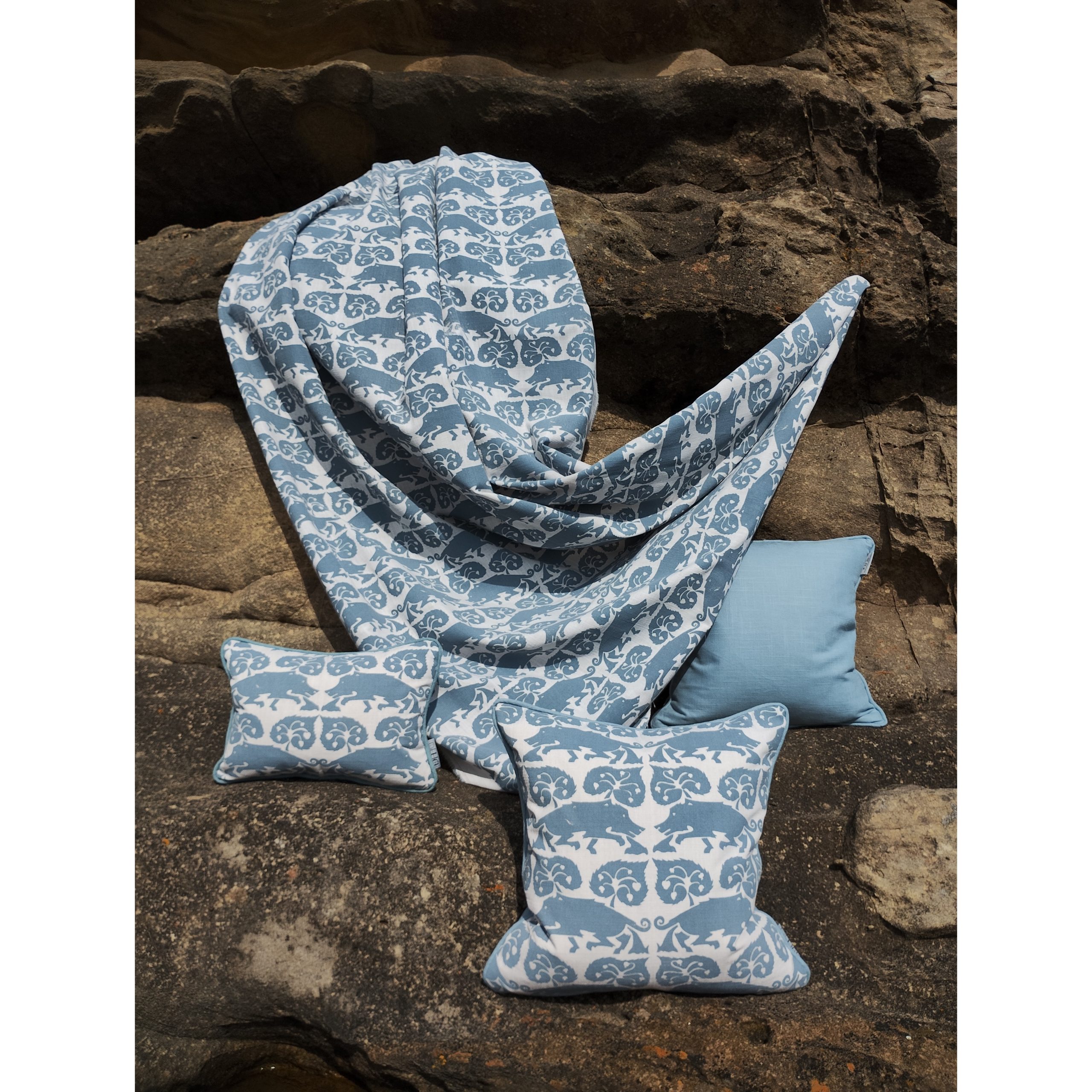 Boar Cushion in blue